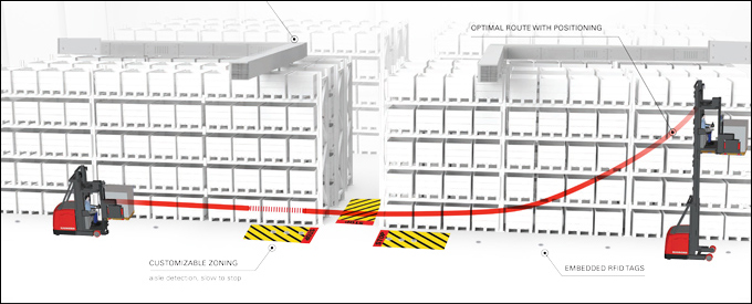 Operator Assist TechnologyRaymond Advance Operator Assist Technology minimizes the pick cycle time by allowing the operator to remotely command the truck to travel tractor-first in an aisle between picks. The operator can remain on the floor in optimal picking position, minimizing travel to and from the truck.